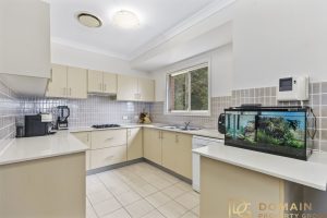 – Large, modern kitchen with gas cooking, stone benchtops & dishwasher