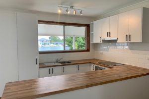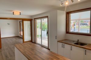 The home features three bedrooms, a recently updated kitchen with lovely views over the water and pool, and a single lock-up garage for added convenience.