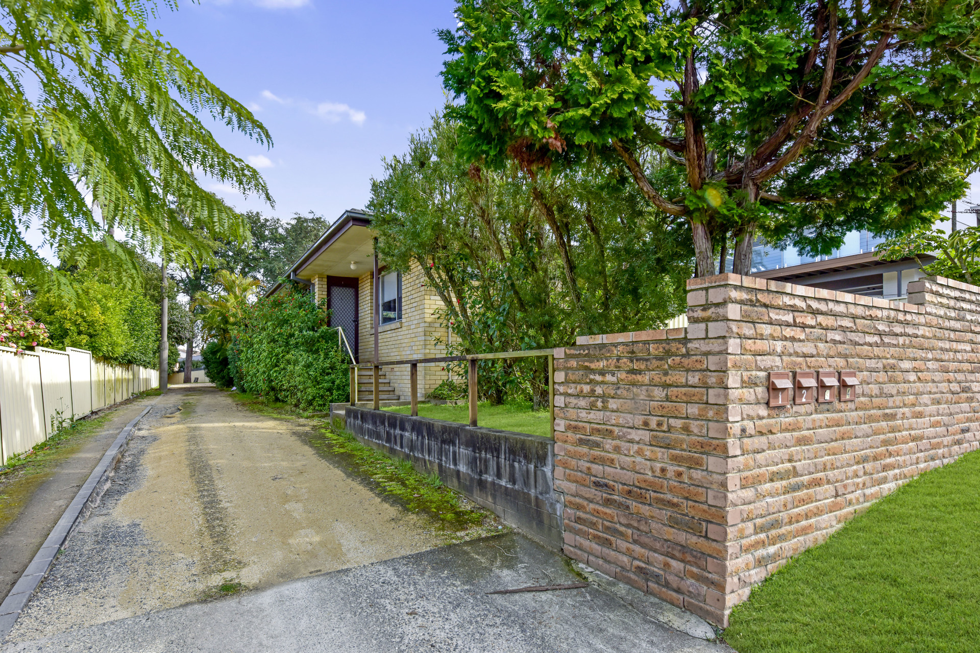 - Fully fenced private courtyard with access to front common grassed area